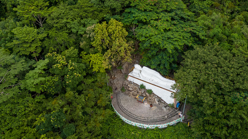 Chùa nằm trong khu rừng xanh mát, mang ý nghĩa về phước báo và sự thịnh vượng từ thiên nhiên.